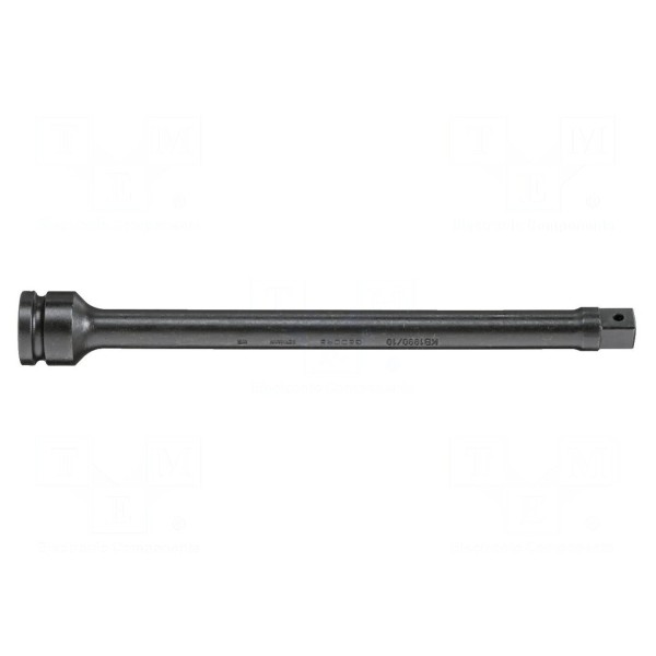 Przedłużka przeznaczona do kluczy nasadowych udarowych wyposażona jest w gniazdo typu kwadrat o rozmiarze 1/2". Element został wykonany ze stali oraz wykończony powłoką fosforowaną, co zwiększa jego odporność mechaniczną podczas pracy z narzędziami udarowymi.