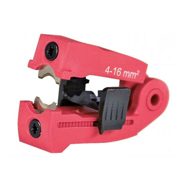 Szczęka stanowi część zamienną przeznaczoną do pracy z przewodami o przekroju od 4mm² do 16mm². Element charakteryzuje się zaokrąglonym profilem roboczym.