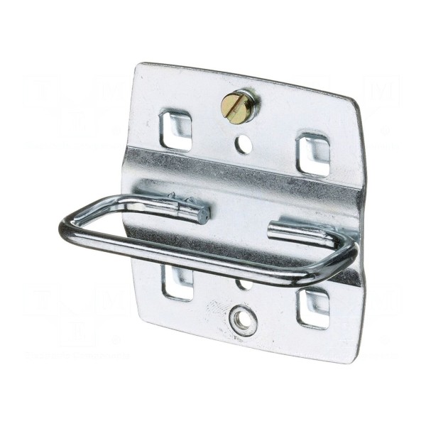 Uchwyt wyposażony jest w gniazdo o wymiarach 10x38mm. Zastosowanie akcesorium umożliwia organizację przestrzeni magazynowej na panelach perforowanych.