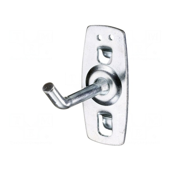 Uchwyt przeznaczony jest do montażu na płytach perforowanych. Element charakteryzuje się odgiętą konstrukcją oraz wymiarami 50x6mm.