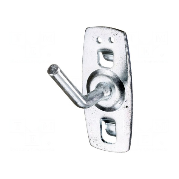 Uchwyt przeznaczony jest do montażu na płytach perforowanych. Element charakteryzuje się odgiętą konstrukcją oraz wymiarami zewnętrznymi wynoszącymi 15x6mm.