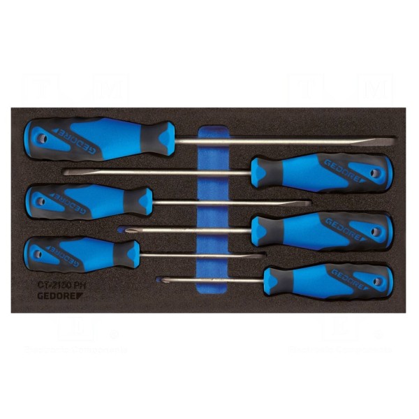 Zestaw 6 wkrętaków Phillips i płaskich we wkładce piankowej