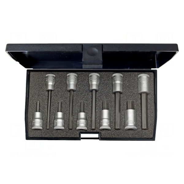 Elementy zestawu zostały zaprojektowane do standardowych zastosowań warsztatowych. Całość dostarczana jest w opakowaniu zbiorczym zawierającym komplet dziesięciu sztuk końcówek.