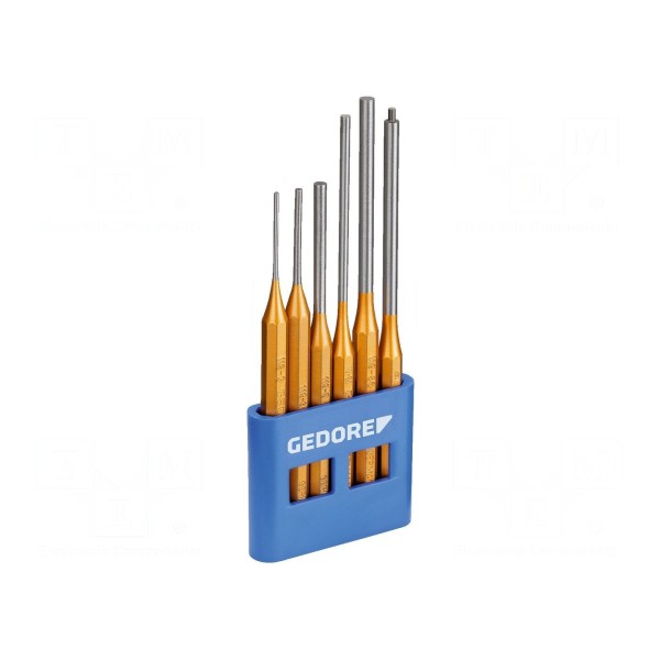 W skład zestawu wchodzi 6 sztuk narzędzi. Elementy wykonano zgodnie ze standardami marki GEDORE dla tego typu przyrządów ręcznych.
