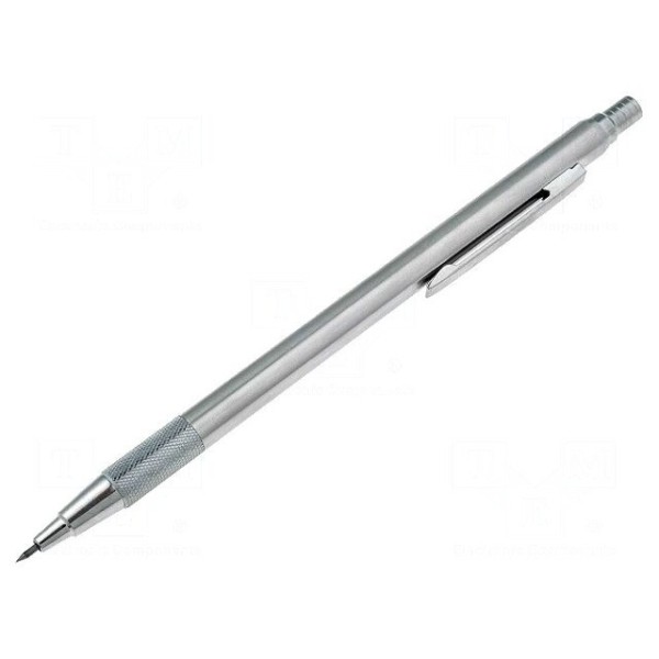 Rysik o średnicy 2mm wykonany został ze stali nierdzewnej. Narzędzie charakteryzuje się długością 148mm oraz konstrukcją opartą na obudowie typu ołówkowego.