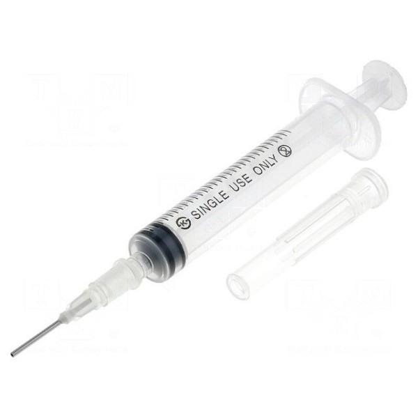 Strzykawka o pojemności 3ml przeznaczona do precyzyjnego dozowania substancji płynnych. Urządzenie wyposażono w standardowe mocowanie typu Luer Lock, które zapewnia stabilne połączenie z końcówką roboczą.