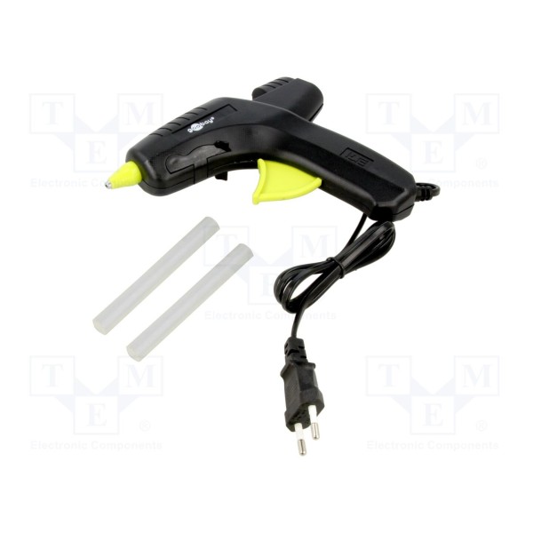 Pistolet do klejenia marki GOOBAY przeznaczony jest do pracy ze sztyftami o średnicy 11 mm oraz 12 mm. Urządzenie osiąga moc roboczą na poziomie 80 W, co umożliwia rozgrzanie kleju do maksymalnej temperatury 200°C.