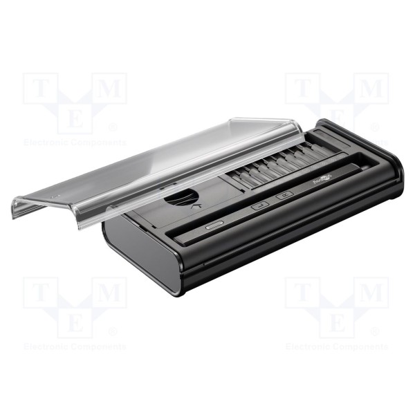 Wkrętarka precyzyjna GOOBAY 77838 jest zasilana wbudowanym akumulatorem Li-Ion o napięciu 3,6V i pojemności 350mAh. Urządzenie zostało wyposażone w funkcję podświetlenia pomocniczego LED, która ułatwia pracę w miejscach o ograniczonym dostępie do światła.