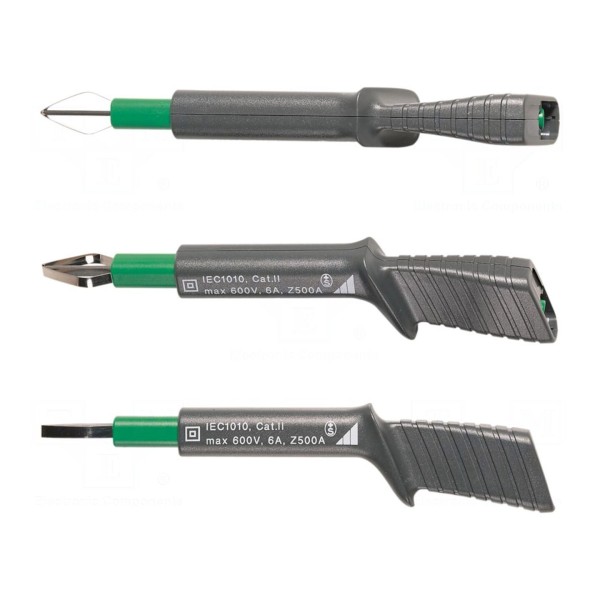 Zestaw sond pomiarowych przeznaczony jest do wykonywania pomiarów elektrycznych w instalacjach o napięciu do 600V. Parametry techniczne pozwalają na pracę przy prądzie znamionowym wynoszącym 6A.
