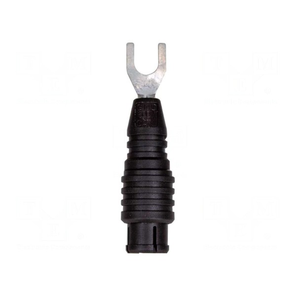 Złącze laboratoryjne widełkowe marki GOSSEN METRAWATT przeznaczone jest do połączeń elektrycznych w układach pomiarowych. Element przystosowany jest do pracy przy prądzie znamionowym 16A oraz napięciu znamionowym 0,6kV. Konstrukcja złącza o długości całkowitej 72mm wykonana jest w kolorze czarnym.