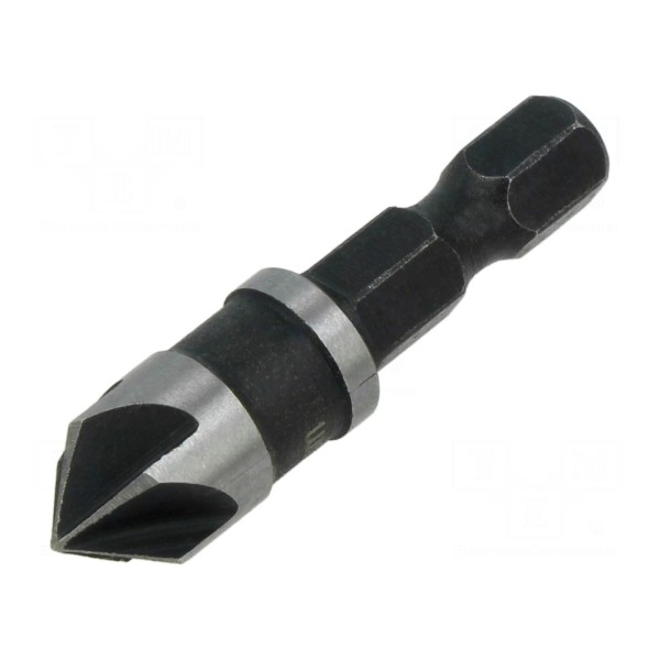 Element wyposażono w sześciokątny uchwyt o rozmiarze 1/4", co umożliwia jego montaż w standardowych uchwytach narzędziowych. Całkowita długość fazownika wynosi 40mm.