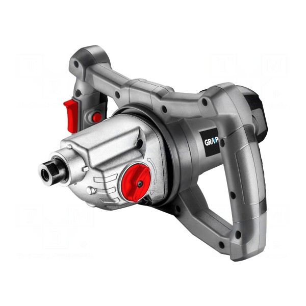 Konstrukcja narzędzia uwzględnia ergonomiczną rękojeść, co poprawia komfort pracy podczas długotrwałego mieszania mas. Urządzenie dostarczane jest z niezbędnym osprzętem eksploatacyjnym. W zestawie: klucz montażowy x2, mieszadło x2, trzpień montażowy.