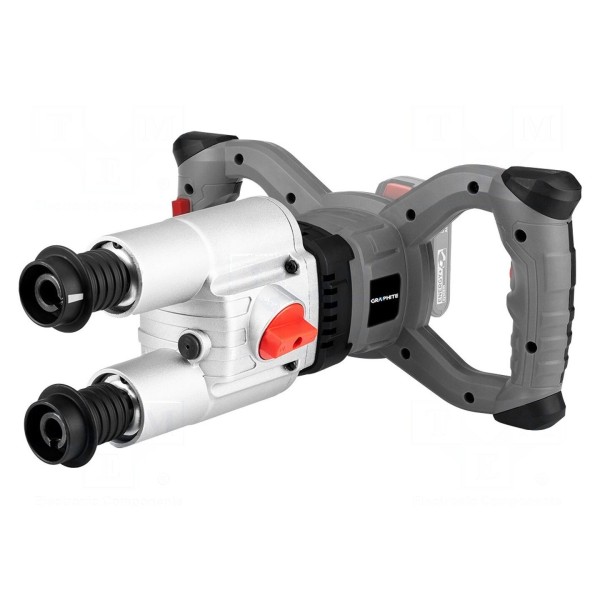 Mieszarka GRAPHITE 58GE129 to narzędzie wyposażone w bezszczotkowy silnik zasilany akumulatorem 18V z serii Energy+. Konstrukcja urządzenia obejmuje dwa biegi, umożliwiając pracę z prędkością obrotową w zakresach 250–400 obr./min oraz 350–650 obr./min. System posiada podwójne mocowanie mieszadeł, co wpływa na charakterystykę mieszania materiałów.