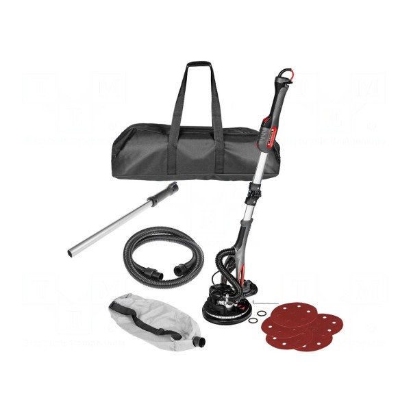 Szlifierka elektryczna GRAPHITE 59G265 to urządzenie o mocy maksymalnej 800W, zasilane napięciem 230V AC. Urządzenie zostało zaprojektowane do obróbki tynków oraz gipsu. Wykorzystuje tarczę o średnicy 225mm oraz oferuje płynną regulację prędkości obrotowej w zakresie od 800 do 1800 obr./min.
