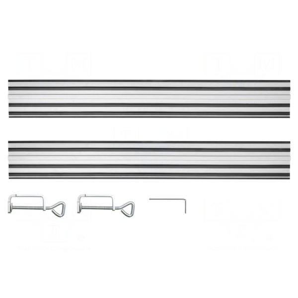 W zestawie: prowadnica x2, zacisk x2. Komplet składa się z 4 elementów.