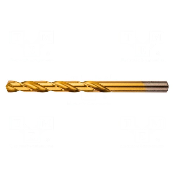 Wiertło do metalu o średnicy 8mm zostało wykonane ze stali szybkotnącej HSS. Narzędzie posiada powłokę z azotku tytanu, która zwiększa parametry użytkowe wiertła podczas obróbki materiałów.