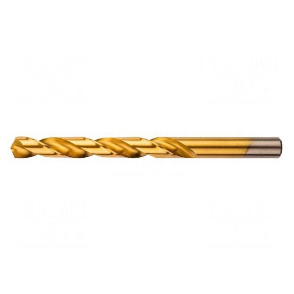 Wiertło przeznaczone do obróbki metalu o średnicy 12 mm. Narzędzie wykonano ze stali szybkotnącej HSS, która została pokryta warstwą azotku tytanu dla zwiększenia trwałości.