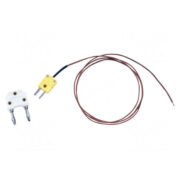 Sonda temperatury typu K wyposażona jest w specjalny wtyk umożliwiający podłączenie do mierników. Przewód pomiarowy charakteryzuje się długością 1 m i jest wykonany w kolorystyce czarno-czerwono-żółtej.