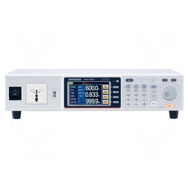 Programowalny zasilacz laboratoryjny GW INSTEK APS-7050 to jednokanałowe urządzenie liniowe przeznaczone do zasilania AC. Sprzęt dostarcza napięcie wyjściowe w zakresie 0–310V AC przy maksymalnym prądzie wyjściowym 4,2A oraz częstotliwości roboczej od 45 do 500Hz. Konstrukcja umożliwia generowanie przebiegów arbitralnych oraz zapisywanie do 10 własnych konfiguracji ustawień.