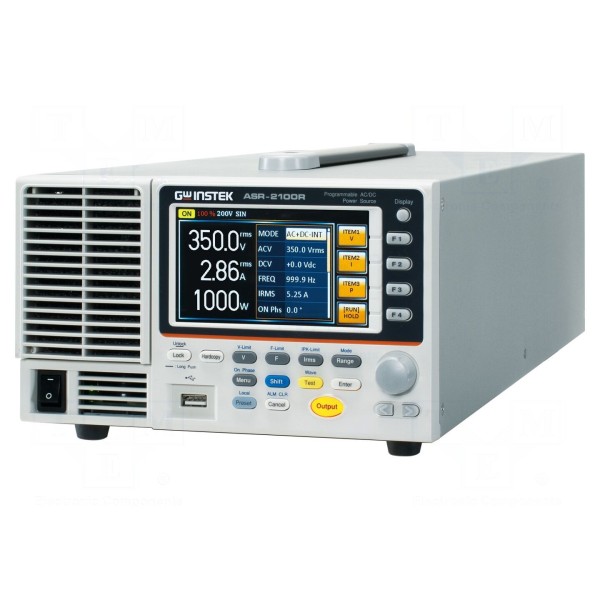 ASR-2100R to programowalny, jednokanałowy zasilacz laboratoryjny typu AC/DC, zaprojektowany do montażu w szafie typu rack. Urządzenie oferuje napięcie wyjściowe w zakresie od 0 do 350V dla prądu AC oraz od -500 do 500V dla prądu DC, przy prądzie wyjściowym osiągającym 10A. Zakres częstotliwości pracy zasilacza wynosi od 40 do 999,9Hz.