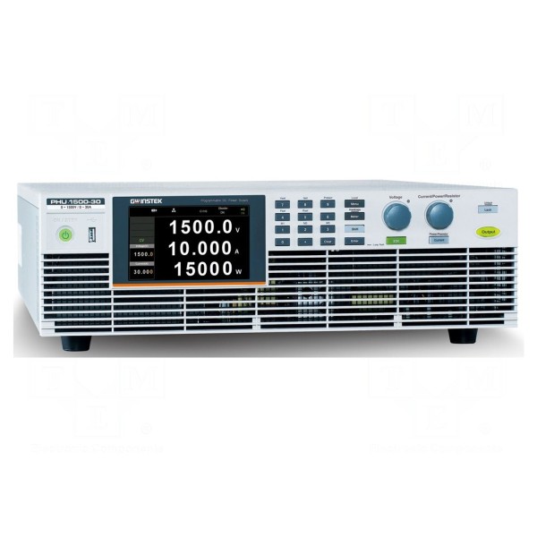 Programowalny zasilacz laboratoryjny DC zapewnia jednokanałowe wyjście o mocy 15kW, umożliwiając regulację napięcia w zakresie 0–1,5kV oraz natężenia prądu do 30A. Urządzenie oferuje automatyczne przełączanie między trybami stałego napięcia (CV) oraz stałego prądu (CC). Obsługa parametrów pracy odbywa się za pomocą interfejsu z 5-calowym wyświetlaczem LCD TFT.