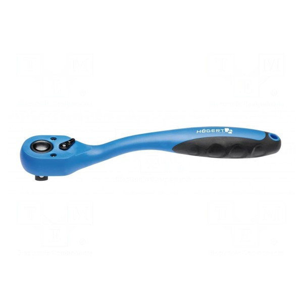 Klucz typu grzechotka marki Högert Technik przeznaczony jest do współpracy z gniazdami o rozmiarze 1/4". Narzędzie wyposażone jest w mechanizm zapadkowy o podziałce 72 zębów, co umożliwia pracę z niewielkim skokiem roboczym w miejscach o ograniczonej przestrzeni.