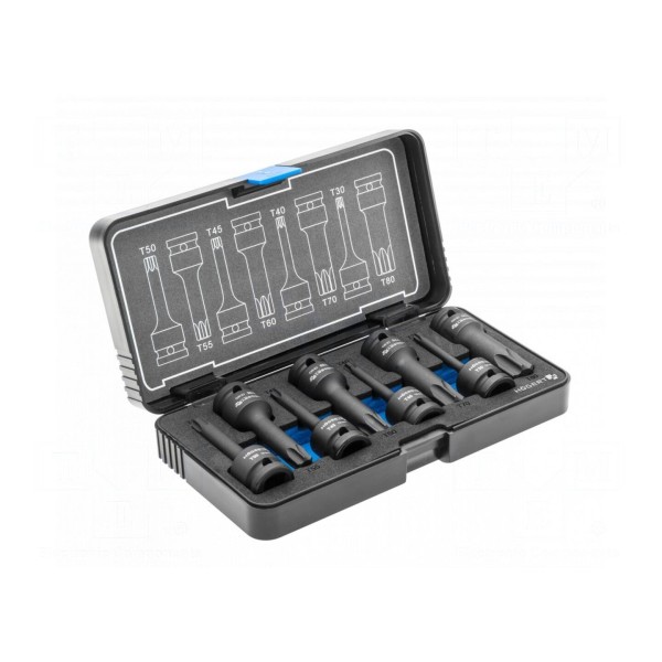 Klucz nasadowy Torx udarowy 1/2", zestaw 8szt.