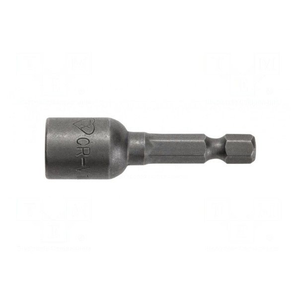 Końcówka wkrętakowa typu nasadka 6-kątna została zaprojektowana do pracy z uchwytami o rozmiarze 1/4". Element posiada gniazdo HEX 13mm oraz magnetyczną konstrukcję, która stabilizuje połączenie z elementem złącznym podczas pracy.