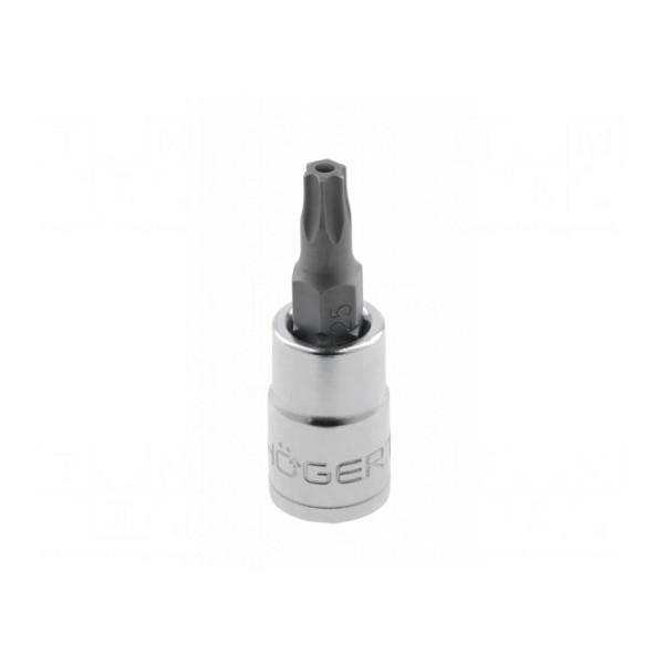 Produkt wykonany został ze stali chromowo-wanadowej oraz stali stopowej, co zapewnia odpowiednią wytrzymałość podczas pracy z elementami złącznymi. Konstrukcja nasadki uwzględnia specyfikę śrub typu Torx z zabezpieczeniem, umożliwiając ich prawidłową obsługę.