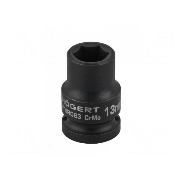 Nasadka udarowa 6-kątna o rozmiarze HEX 13 mm przeznaczona jest do współpracy z napędami o rozmiarze 1/2". Model ten posiada krótką konstrukcję, co pozwala na pracę w miejscach o ograniczonej przestrzeni roboczej.
