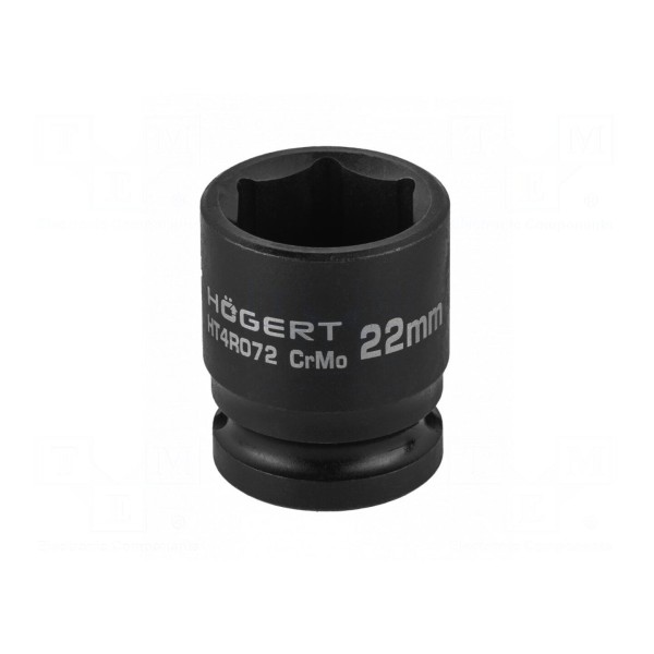 Nasadka udarowa typu 6-kątnego została zaprojektowana do pracy z napędami o rozmiarze gniazda 1/2". Produkt w wersji krótkiej posiada gniazdo o wymiarze HEX 22mm, co umożliwia wykorzystanie go w pracach wymagających przenoszenia wysokich momentów obrotowych.