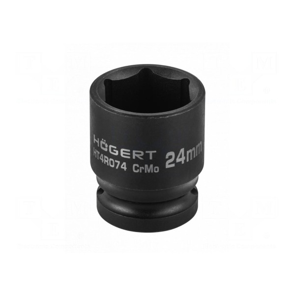 Nasadka udarowa 6-kątna o rozmiarze 24 mm przeznaczona jest do współpracy z narzędziami posiadającymi uchwyt 1/2". Produkt wykonany jest ze stali chromowo-molibdenowej, co zapewnia odporność na obciążenia występujące podczas pracy z kluczami udarowymi.