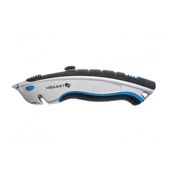 Model wyposażony jest w mechanizm blokady ostrza, który zwiększa bezpieczeństwo podczas użytkowania. Nóż przeznaczony jest do szerokiego zakresu zastosowań w pracach warsztatowych i technicznych.