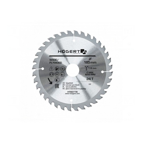 Piła tarczowa o średnicy 185 mm wyposażona jest w 24 zęby tnące. Szerokość tarczy wynosi 1,6 mm, co zapewnia stabilność podczas obróbki materiałów.