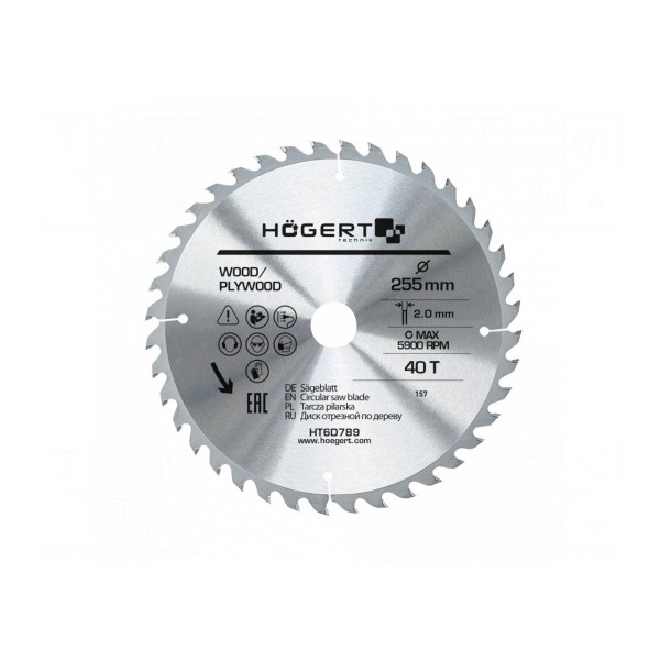 Piła tarczowa o średnicy 255 mm została zaprojektowana do obróbki drewna oraz płyt wiórowych. Narzędzie wyposażone jest w 40 zębów oraz posiada szerokość roboczą wynoszącą 2 mm.