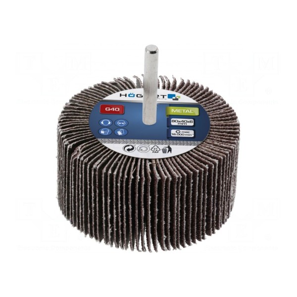 Wymiary ściernicy wynoszą 80x40 mm. Konstrukcja listkowa zapewnia elastyczność podczas obróbki materiałów oraz efektywną pracę na różnych kształtach elementów. Produkt znajduje zastosowanie przy usuwaniu farby oraz usuwaniu warstw lakieru.