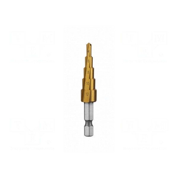 Produkt wykonany jest zgodnie z parametrami dla narzędzi wiertarskich stosowanych w elektronarzędziach. Geometria stopnia pozwala na sprawne przechodzenie między kolejnymi średnicami podczas pracy w arkuszach blachy.