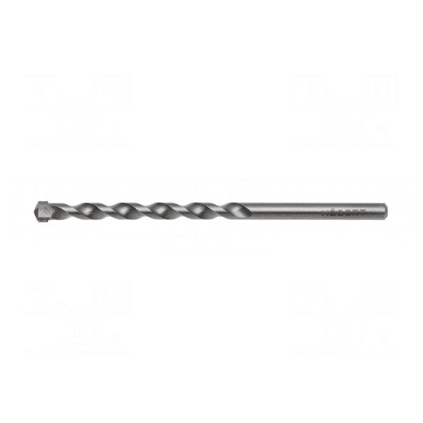 Wiertło przeznaczone jest do obróbki betonu. Narzędzie wykonano ze stali szybkotnącej HSS, natomiast końcówka robocza posiada element z węglika spiekanego, co zwiększa wytrzymałość podczas wiercenia.