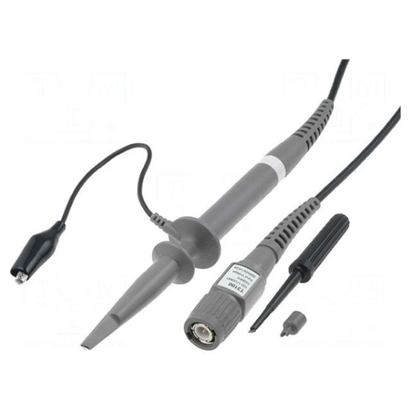 Parametry wejściowe sondy określone są na 100MΩ przy pojemności 14,5pF, natomiast zakres kompensacji wynosi od 15pF do 35pF. Przewód o długości 1,2m zakończony jest wtykiem BNC oraz chwytakiem haczykowym, co ułatwia podłączenie do badanego obwodu.