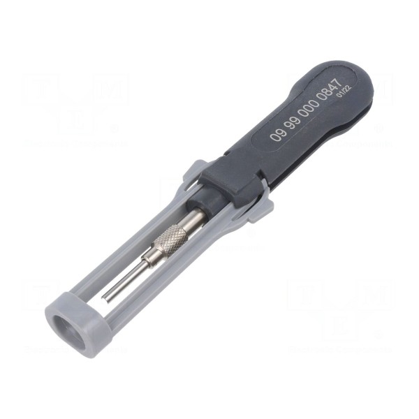 Narzędzie przeznaczone jest do demontażu styków w złączach przemysłowych. Konstrukcja pozwala na usuwanie elementów stykowych typu HAN D-Sub, HAN E oraz Han-Yellock.