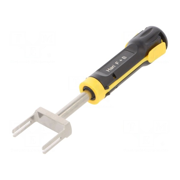 Narzędzie przeznaczone jest do demontażu styków w złączach serii Han® F+B. Konstrukcja elementu umożliwia bezpieczne usuwanie styków z obudów bez ryzyka uszkodzenia komponentów złącza.