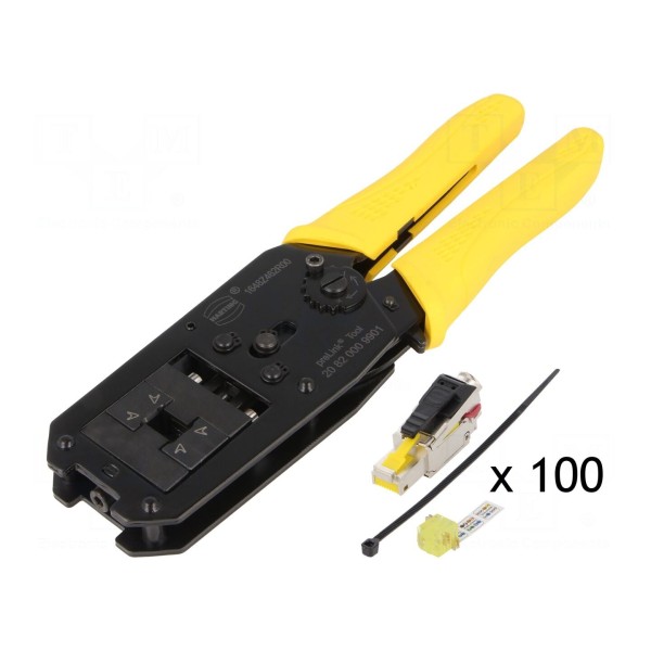 Narzędzie przeznaczone jest do zaciskania męskich złączy Ethernet kategorii 6a. Urządzenie obsługuje przewody o przekroju od 22AWG do 23AWG i wykorzystuje montaż elektryczny typu IDC, pozwalający na połączenie 8 pinów.