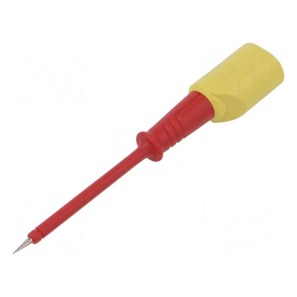 Końcówka pomiarowa przeznaczona jest do współpracy z gniazdami o rozmiarze 4mm. Element charakteryzuje się napięciem znamionowym wynoszącym 60V DC oraz średnicą końcówki roboczej 2mm.