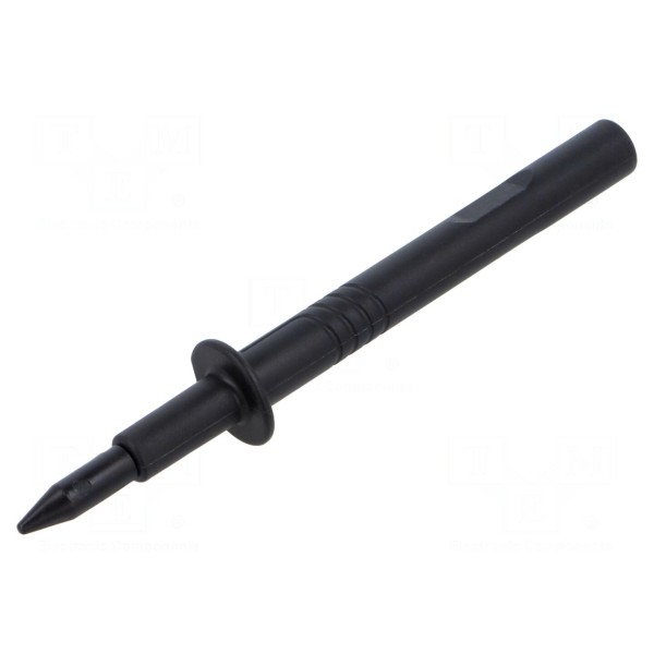 Końcówka pomiarowa przeznaczona jest do pracy z gniazdami o rozmiarze 4mm. Element wykonany został z mosiądzu, co zapewnia odpowiednie parametry przewodzenia. Obudowa końcówki utrzymana jest w kolorze czarnym.