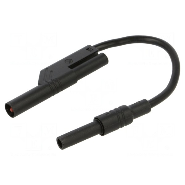 Przewód pomiarowy o długości 80 mm przeznaczony jest do wykonywania połączeń w systemach pomiarowych. Element wyposażono w wtyk bananowy z gniazdem osiowym 4 mm oraz gniazdo bananowe 4 mm, które są w pełni izolowane. Znamionowe parametry pracy urządzenia wynoszą 32 A przy napięciu 0,3 kV.