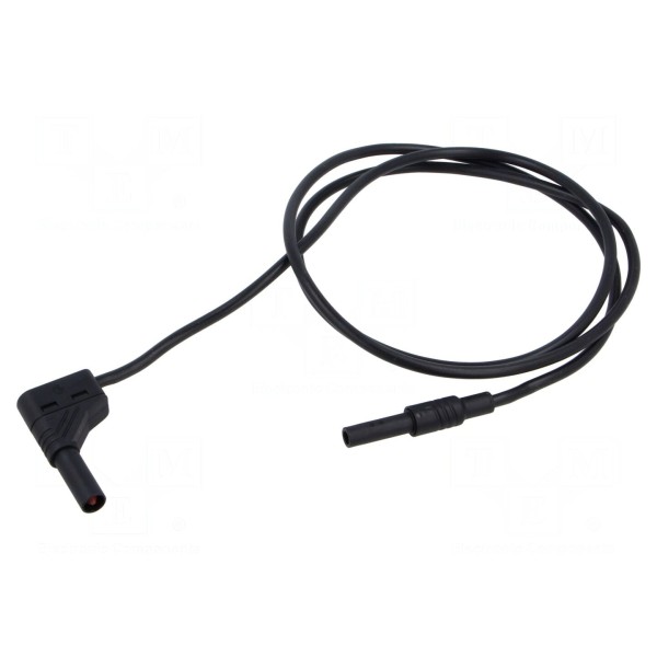 Przewód pomiarowy o długości 1 metra przeznaczony do pracy z prądem znamionowym 32A oraz napięciem do 1kV. Konstrukcja bazuje na przekroju przewodu 2,5mm² wykonanego w izolacji z PVC. Zastosowane złącza obejmują gniazdo bananowe 4mm oraz kątowy wtyk bananowy 4mm.