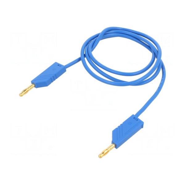 Zakończenia przewodu stanowią wtyki bananowe z gniazdem osiowym 4mm, umieszczone po obu stronach. Styki wykonane są z mosiądzu i poddane procesowi złocenia, co zapewnia parametry połączeniowe. Produkt oferowany jest w kolorze niebieskim.
