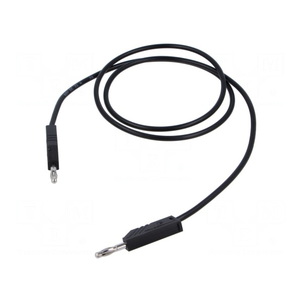 Zakończenia kabla stanowią wtyki bananowe z gniazdem osiowym 4mm umieszczone po obu stronach przewodu. Elementy stykowe wykonano z mosiądzu i poddano procesowi niklowania, co wpływa na parametry połączeniowe. Przewód utrzymany jest w kolorze czarnym.