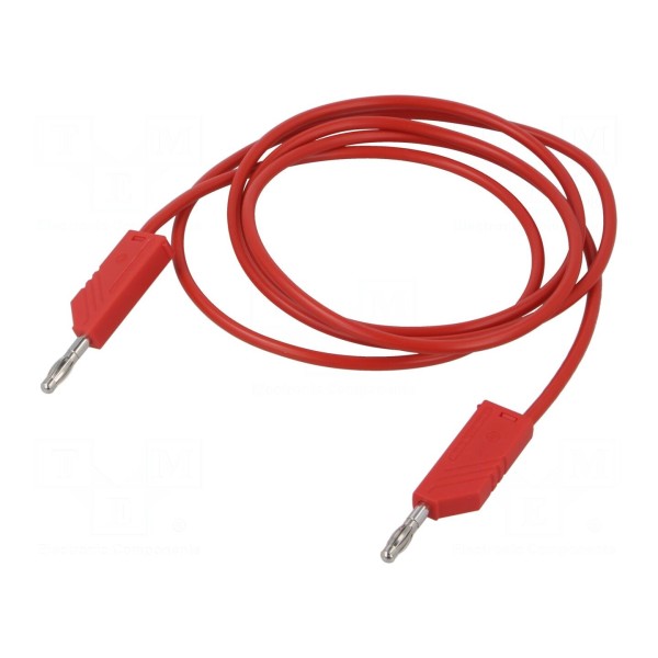 Przewód pomiarowy o długości 1,5 m w kolorze czerwonym przeznaczony jest do transmisji sygnałów o napięciu znamionowym 30 V AC oraz 60 V DC. Jego konstrukcja oparta jest na przewodzie o przekroju 2,5 mm² z izolacją wykonaną z PVC, co zapewnia odpowiednią elastyczność i wytrzymałość podczas eksploatacji w warunkach laboratoryjnych.