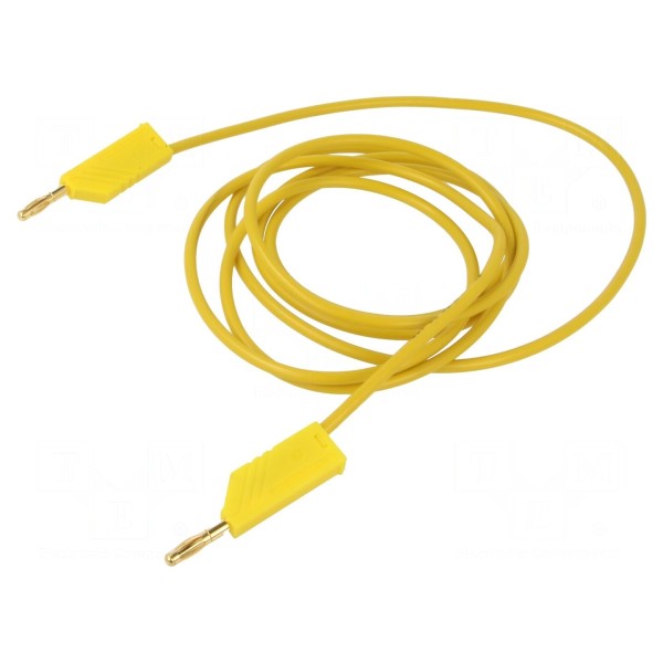 Konstrukcja produktu obejmuje wtyki bananowe z gniazdem osiowym 4mm zamontowane obustronnie. Styki wykonano z mosiądzu i poddano procesowi złocenia, co zapewnia parametry połączeniowe. Przewód utrzymany jest w kolorze żółtym.